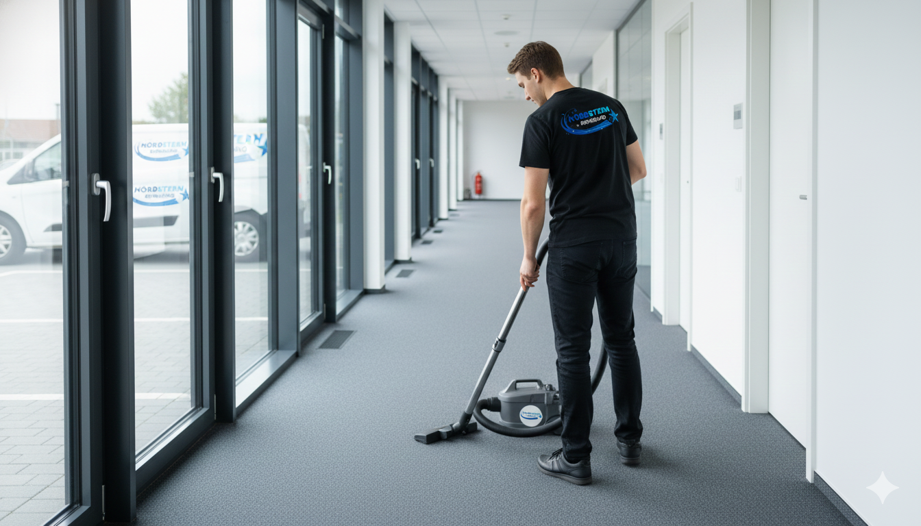 Nordstern bietet: Unterhaltsreinigung für Büros, Praxen und Gewerberäume, professionelle Büroreinigung, Praxisreinigung, Grundreinigung + Unterhaltsreinigung als Komplettpaket, Unterhaltsreinigung inkl. Fensterreinigung, Büroreinigung inkl. Teppichreinigung, Kita- und Schulreinigung. Alle Zusatzleistungen im Rahmen eines regelmäßigen Reinigungsvertrags – als Reinigung Komplettpaket Büro.