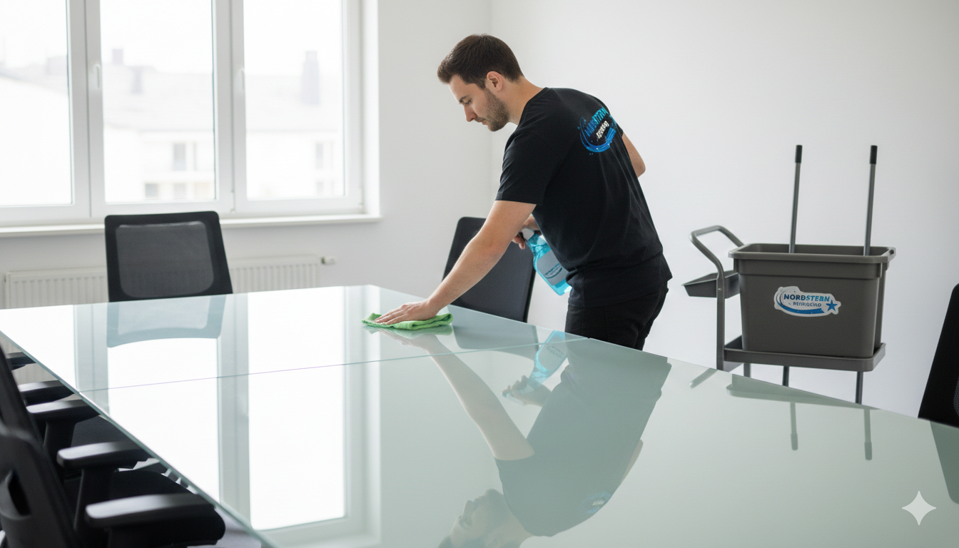 Nordstern Reinigung ist Ihr spezialisiertes Reinigungsunternehmen für die tägliche Unterhaltsreinigung von Büros, Arztpraxen, medizinischen Einrichtungen und Gewerberäumen in Kiel, Eckernförde und ganz Schleswig-Holstein. Als zuverlässige Reinigungsfirma bieten wir professionelle Büroreinigung, Praxisreinigung und regelmäßige Reinigung mit höchsten Qualitätsstandards. Mit 52 Top-Bewertungen auf 3 Portalen und 4,91 von 5 Sternen sprechen unsere zufriedenen Kunden für sich.